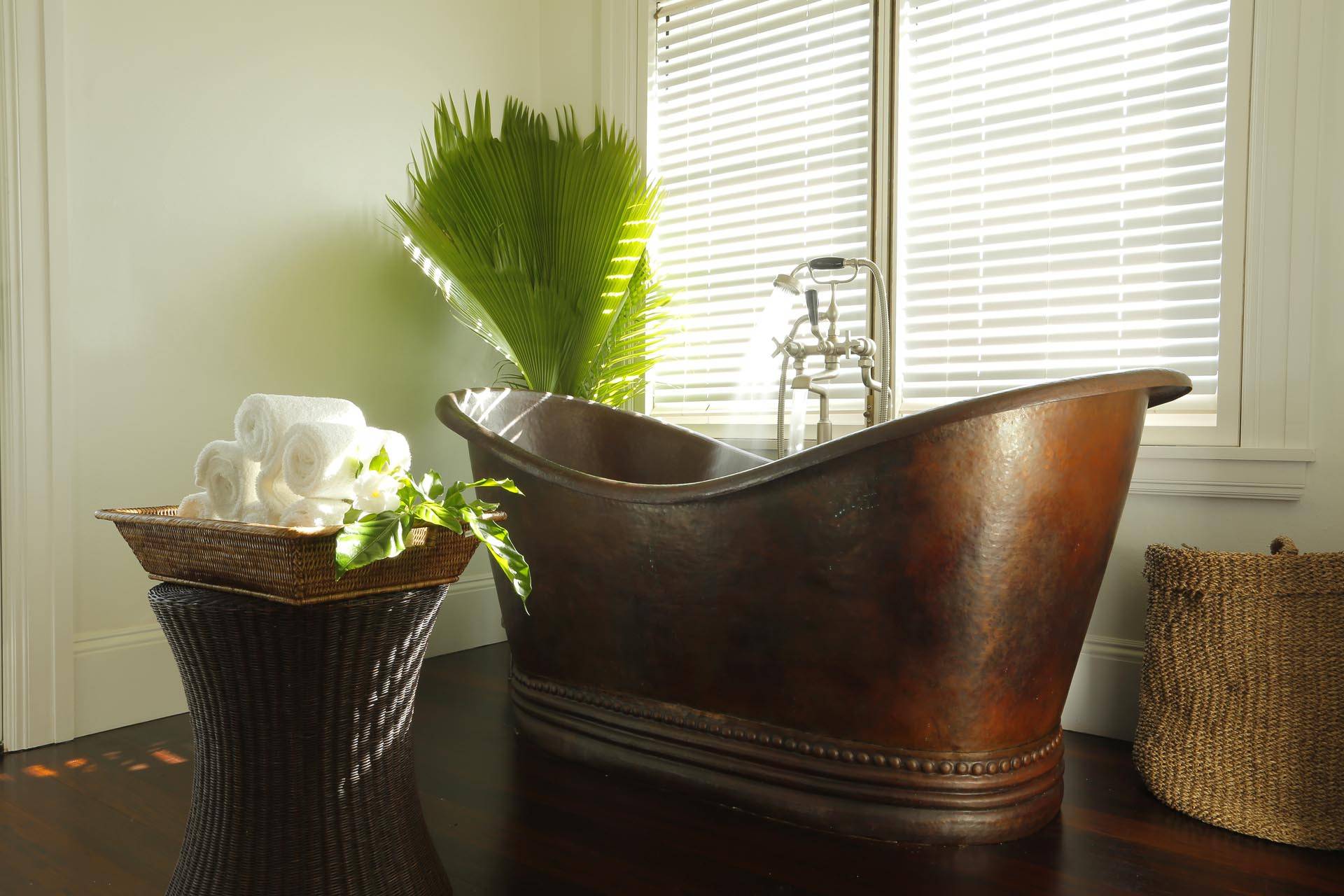 Guest House Two – Bedroom 7 | King Bed x1 | Second level: En-suite bathroom with bathtub, indoor and outdoor shower, double vanity, air conditioning, access to terrace. |