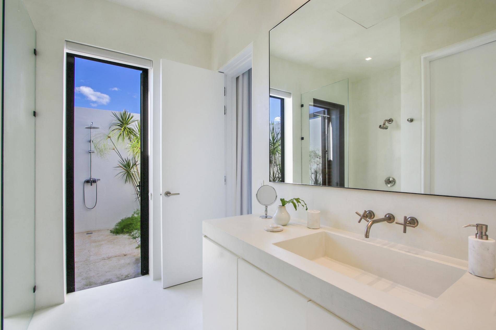 Casa Caleton boasts twelve beautifully appointed bedrooms. Six are on the ground floor, each with two queen beds, en-suite bathrooms, air conditioning, TVs, and direct outdoor access. Upstairs, three primary bedrooms face the ocean, offering king beds, en-suite bathrooms, and private balconies with panoramic 180-degree views of the sea.