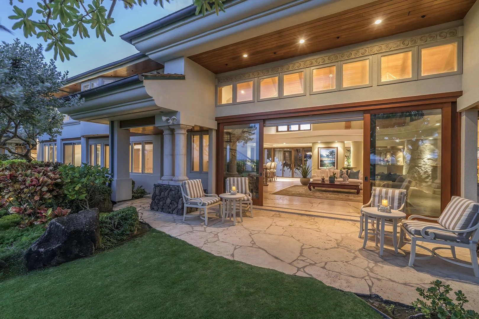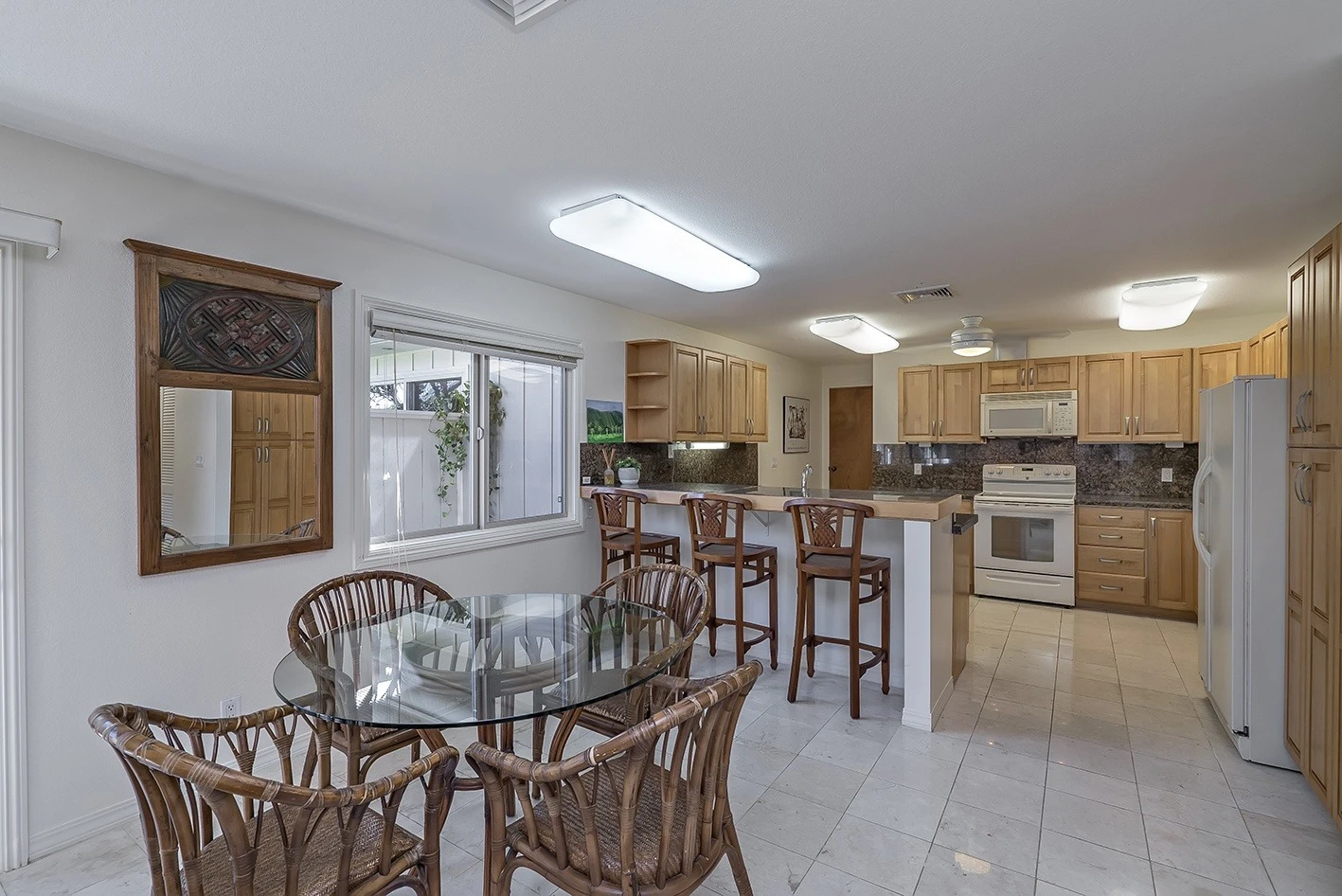Step out to the backyard of Ali’i Point #9 for a wealth of amenities including the solar infinity heated pool and on-demand electric heated hot tub, overlooking the glistening ocean waves. Or relax poolside in the beach loungers, beach chairs, loveseat recliner, or at the large dining table fit for 8 where the entire group can enjoy a sumptuous meal while reveling in the beauty of the Hawaiian sunset. Around the corner of the lanai, you’ll find the partially covered exterior space equipped with a long bar counter with bar chairs, a barbecue grill station, a refreshing outdoor shower and laundry sink area as well as a lush yard space perfect for a picnic.