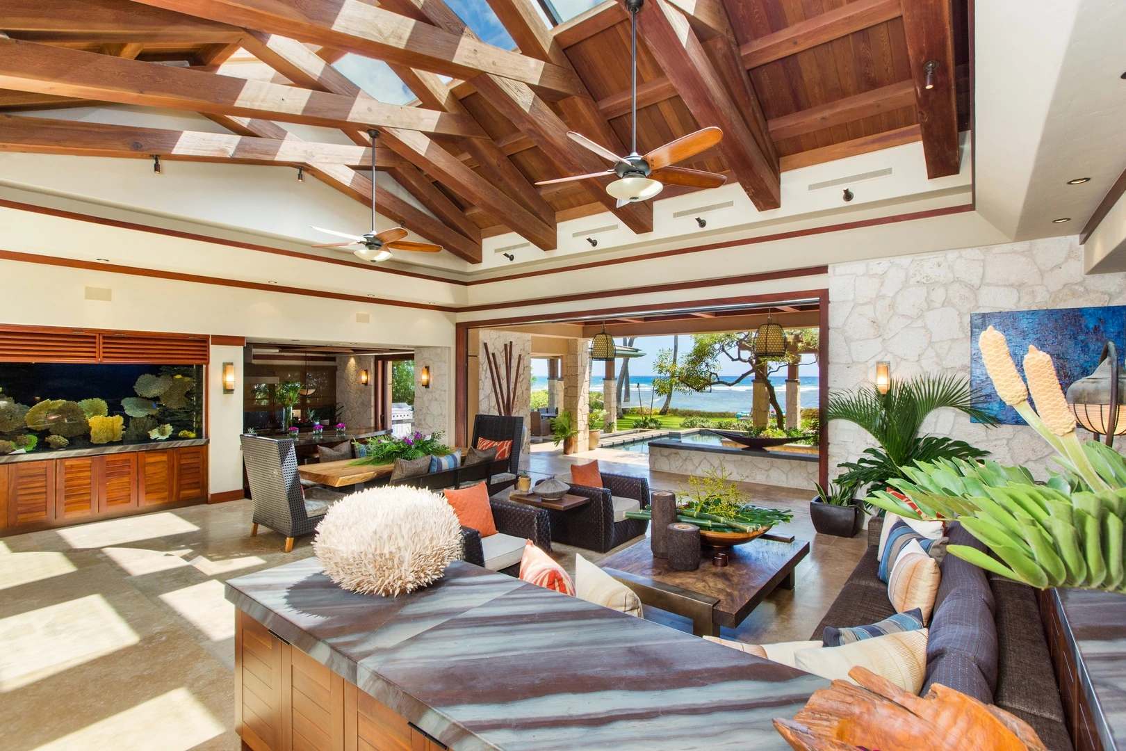 The back yard is enchanting with a shimmering modern-style pool and manicured yard edged with native plants. The beachfront lawn is steps to the crystal clear ocean. Banyan House sits along a cove, perfect for swimming, snorkeling, and surfing. Come experience life as it should be: peaceful, fun, carefree and truly fulfilling.