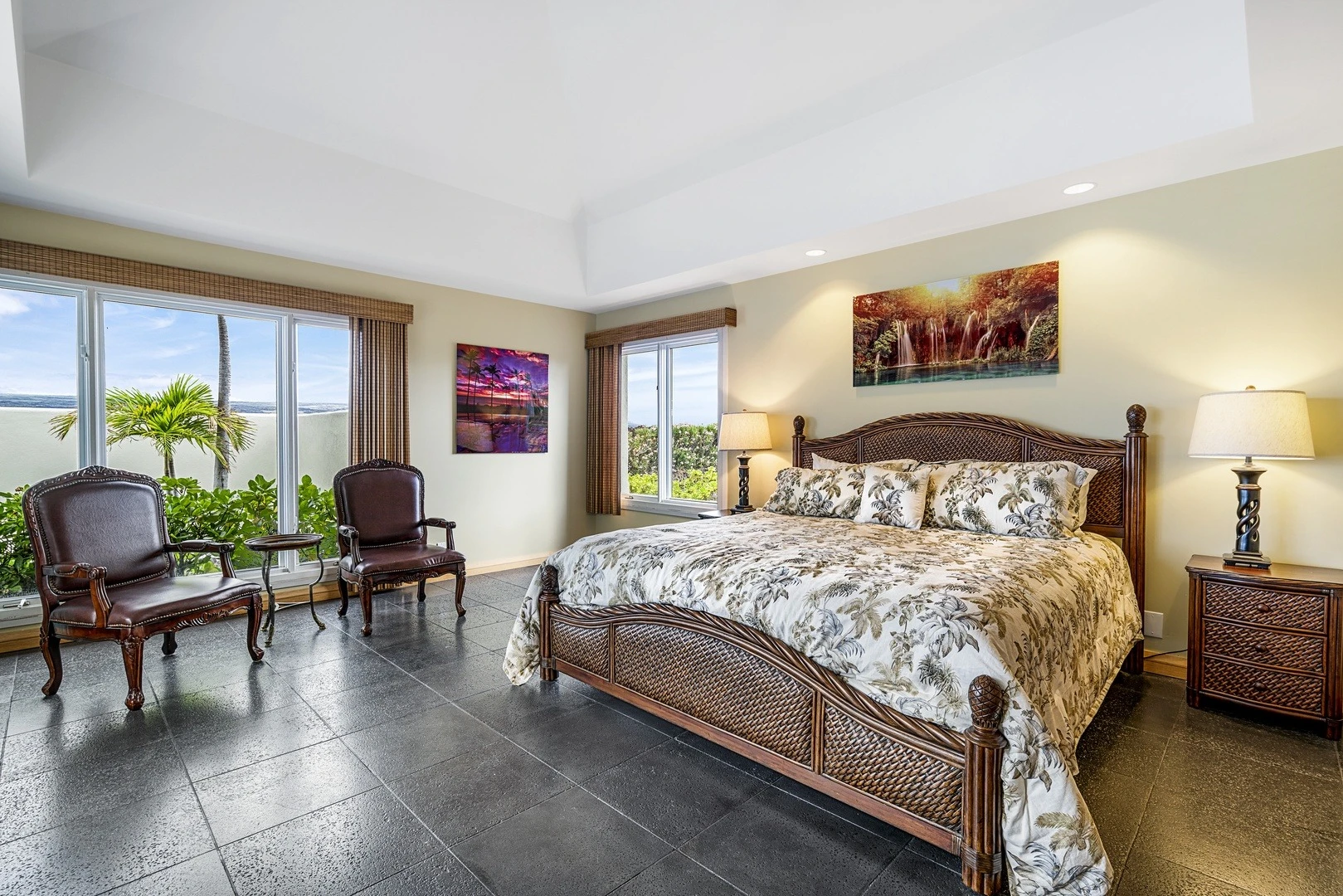 Located in the prestigious Champion Ridge gated community at Mauna Lani, The Oasis provides the ultimate spacious vacation destination, with over 5,500 square feet, five large king bedrooms, and five bathrooms. For family reunions, wedding parties, and other large groups, this spectacular home can be rented along with its next-door neighbor, The Blue Lagoon, to accommodate up to 24 guests in 12 bedrooms.