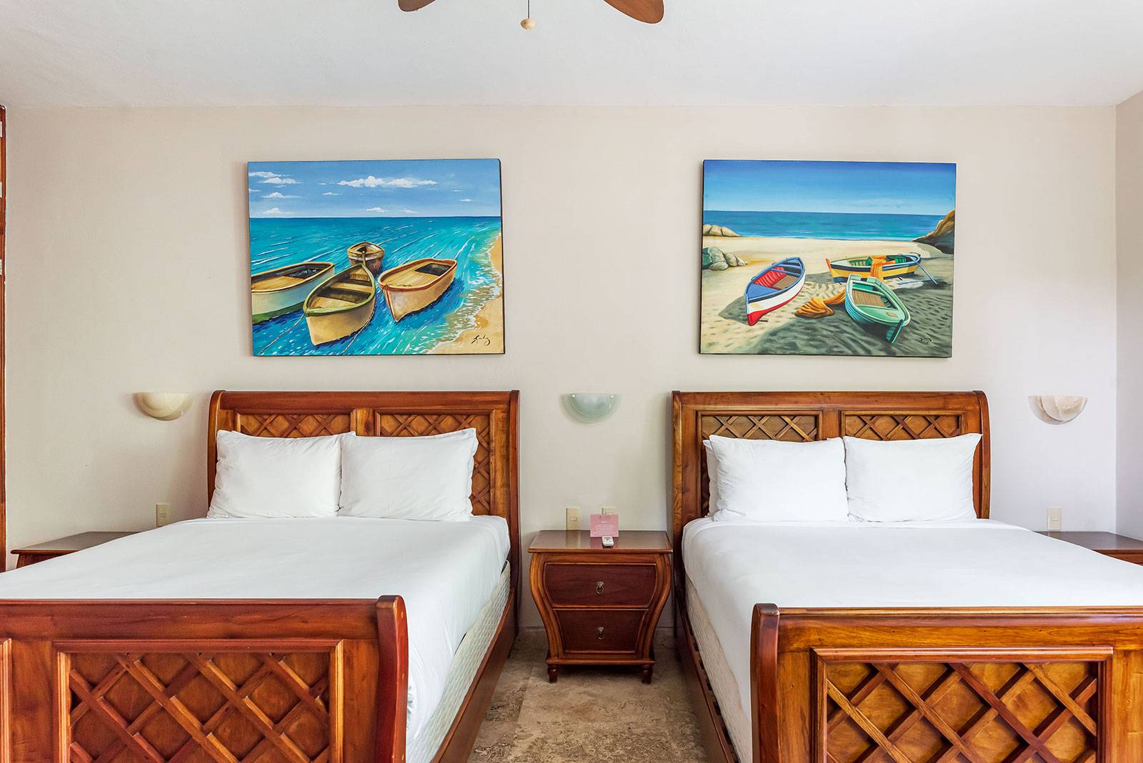 There are five artistically designed air-conditioned bedrooms with 14-foot ceilings inside the villa; 2 bedrooms are furnished with 2 queen-size beds, two bedrooms are furnished with 1 king-size bed and 1 bedroom is furnished with 1 queen-size bed. There are also 4 lovely guesthouses located outside; 2 of the guesthouses are furnished with 2 king-size beds and the other 2 guesthouses each have 1 king-size bed. Each of the 9 bedrooms is equipped with ceiling fans and a security safe. Casa Yardena’s magnificent decor was inspired by Mexican architecture and craftsmanship. Every bedroom has its private luxurious marble bathroom and the master bathroom has a Jacuzzi tub with an incredible view of the Caribbean.