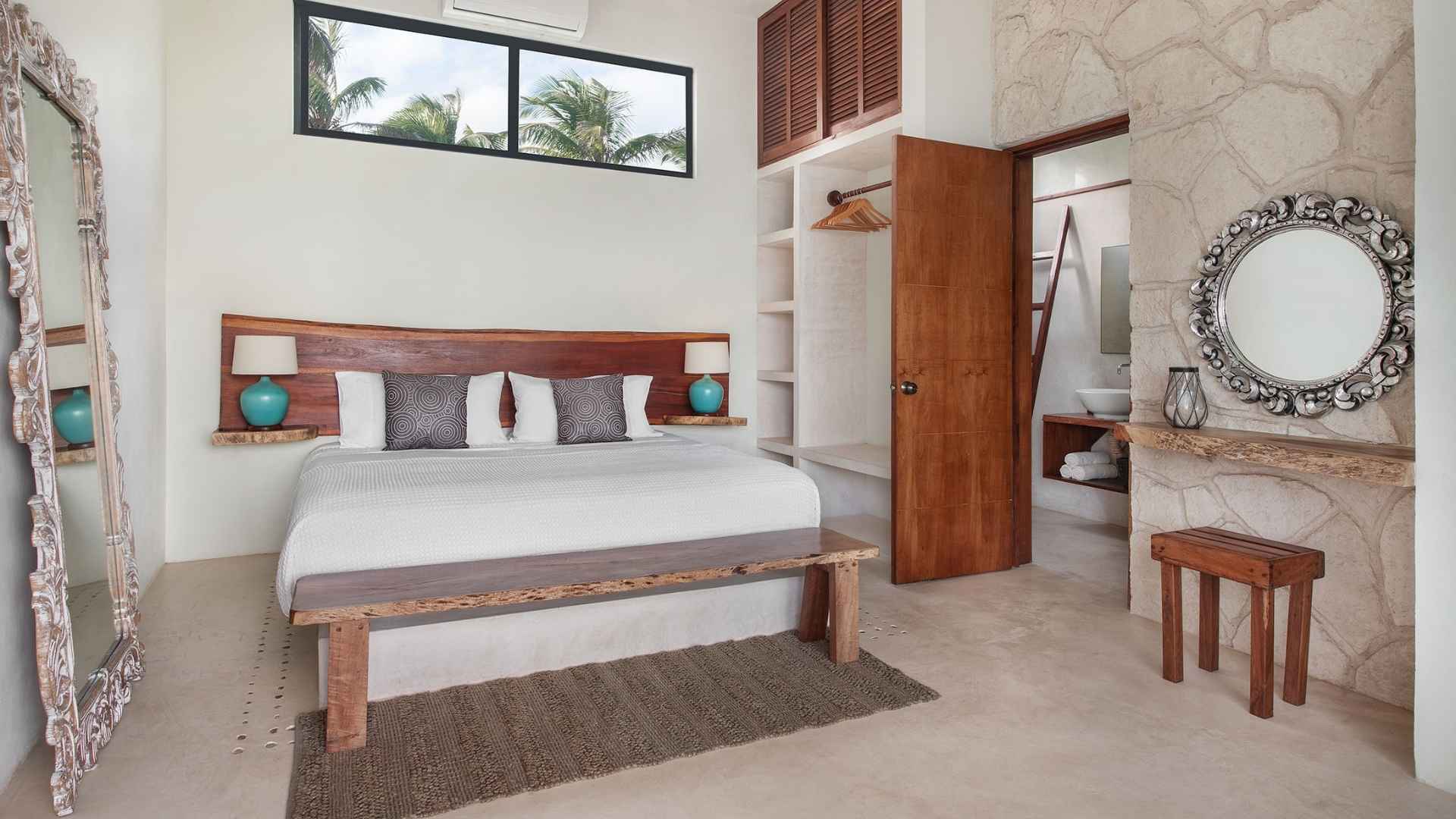 Every bedroom is equipped with top quality, 100% cotton bed linens and pillows for maximum comfort and toiletries in each private bathroom. Our space offers a fully equipped kitchen stocked with all pots, pans, cooking utensils, Ninja blender, coffee maker, toaster oven, filtered water system, readily available purified water, refrigerator, freezer, microwave, Bose sound system and an astounding outdoor jungle pool. The villa also includes an abundance of outdoor living space. Hang out with your friends and family and enjoy a memorable sunset jungle experience. A short 5 minute walk to the corner that meets the main road and you will come across Gypsea Market, where you will find fresh, organic & natural products; Italdo, a delicious cafe & bakery; Digital Jungle, a co-working space, and a wine tasting bar. 5 minutes in the other direction will take you to Calle 7— the main strip for La Veleta locals, where you will also find many cafe and restaurant options, as well as fresh fruiterias, taco stands, pharmacies and clothing boutiques. Tulum’s most exclusive beach clubs and restaurants are just 20 minutes away via car ride. Truly a perfect combination of nature and modern comfort.